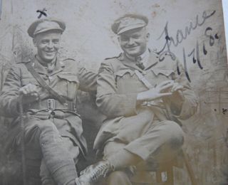 Ray Simpson on left. Taken in France in 1918, just prior to his injury.